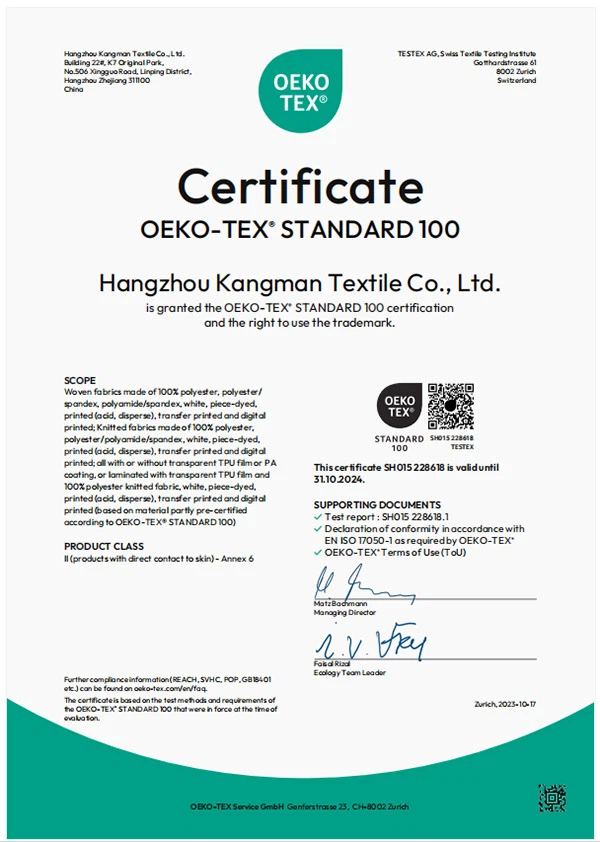 Kangman Textile omab 30-aastast rikkalikku kogemust ja ajalugu tekstiilide trükkimise ja värvimise vallas, mille konkurentsivõime põhipunktiks on teenindus, kvaliteet, kulutasuvus ning tooteuuendus ja -arendus, ning on pühendunud kõrgekvaliteediliste kangatoodete uurimisele ja arendamisele. K&M tekstiilil on ka oma sõltuv värvimistehas, ettevõttesisene testimiskeskus, suurepärane uurimis- ja arendusmeeskond ning aktiivne müügimeeskond, mis saab kujundada ja arendada kangaid vastavalt kliendi nõudmistele. Samal ajal on meil täielik valik kangatooteid, mitmesuguseid tasuta A4 näidiseid, mida saate valida.